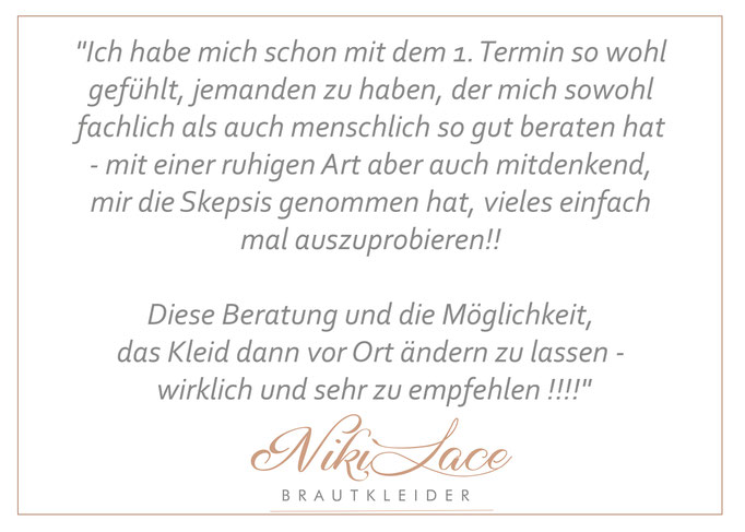 Dein Unikat, Dein Moment: Stelle dir vor, wie du den Gang entlangschreitest, in einem Kleid, das so einmalig ist wie deine Liebesgeschichte. Bei Niki Lace möchten wir diesen Traum mit dir verwirklichen. Vom ersten Beratungsgespräch bis hin zur finalen Anprobe begleiten wir dich auf dem Weg zu deinem Traumkleid.